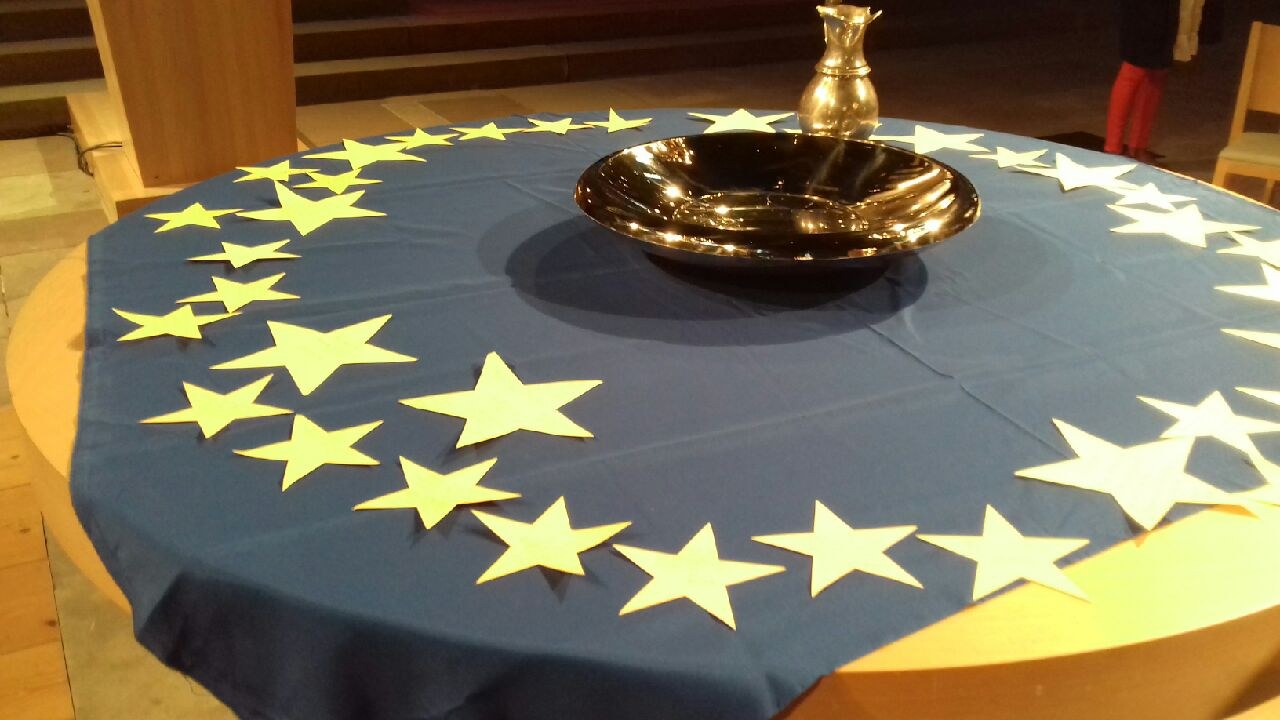Elle a été très riche. Nous avons rendu grâce pour les bienfaits de l’Europe. Puis, par petits groupes nous avons écrit un souhait pour l’Europe, souhait porté ensuite dans une prière commune. Belle méditation biblique à deux voix du texte de Luc 6, 27-38 : « Aimez vos ennemis »