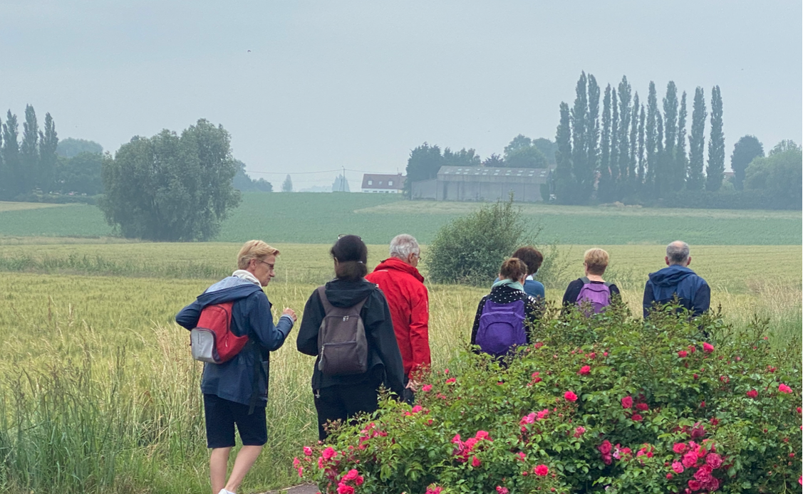 Et nous voilà partis pour une balade en campagne fléchée. Chacun choisit : 5 km ou 3 km. Des groupes de 6 ou 8 personnes partent petit à petit. Des enfants, des adultes, des grands-parents, l'intergénération est là.. La joie de se revoir, de se retrouver, on marche en se laissant aller à parler soit des questions qui nous sont proposées sur le thème "l'Equilibre de vie, et si on en parlait ?", soit en partageant tout simplement notre vie que nous n'avons pas pu faire comme nous aurions aimé cette année. Nous avions plein de tranches de vies à partager, en petits groupes, nous avons sillonné la campagne pendant 1h20 ou 45 mn selon les envies de chacun.