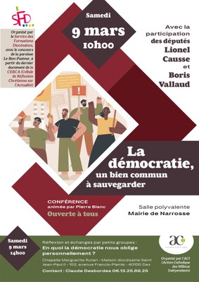 L'ACI du territoire d'Aire et Dax organise une réflexion et échanges par petits groupes : En quoi la démocratie nous oblige personnellement ?