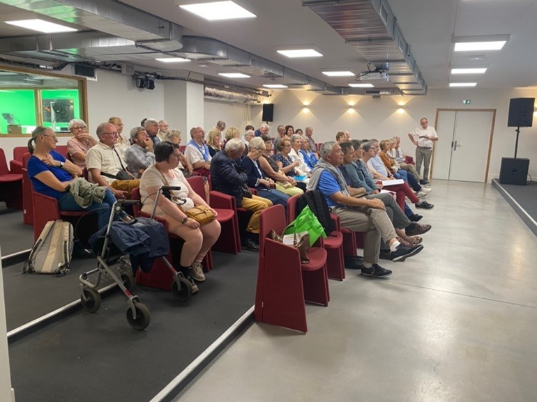 Les personnes présentes ont pu découvrir le rez-de chaussée de cet ensemble autour d’un pot de l’amitié à l’arrivée. Occasion de se retrouver entre équipes, entre fédérations, et de découvrir cet ensemble qui nous donne envie de mieux comprendre ce qui est à l’origine de cette construction insolite, innovante, accueillante, lumineuse, ouverte.