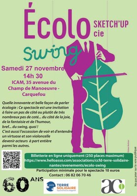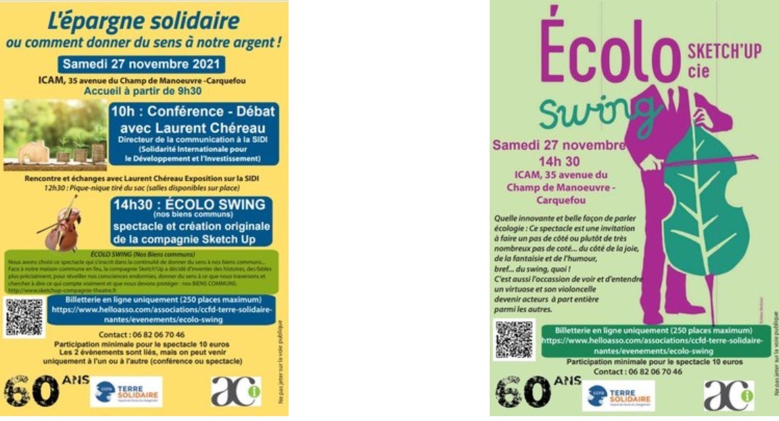 Il est indispensable d'acheter son billet de spectacle à l'avance via la plateforme : https://www.helloasso.com/associations/ccfd-terre-solidaire-nantes/evenements/ecolo-swing