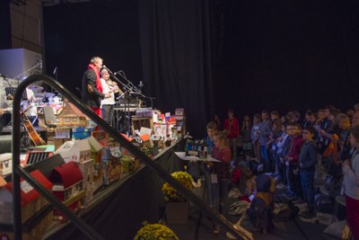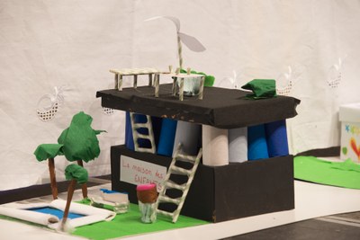 Les enfants apportent la maison commune qu'ils ont réalisés aujourd'hui