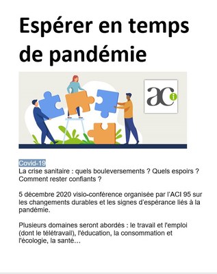 Nous avons donc organisé une AGORA le 5 décembre 2020 sur le thème des « Signes d'espérance à retirer face à la crise sanitaire ».