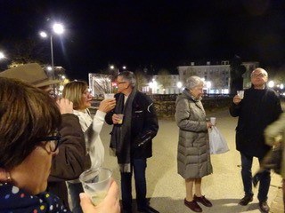 - Cette soirée était riche de la rencontre avec les 4 membres de l'association qui nous ont partagé. Bien sûr, sur le chemin j'ai rencontré G. qui vit avec sa petite retraite de moins de 1000€ par mois et sert la cathédrale; mais pour la rencontre des étrangers nous n'étions pas assez près de la mediathèque près de laquelle ils profitent du wi fi . On ne peut temoigner de partage avec eux.
